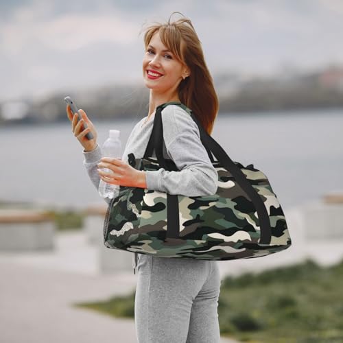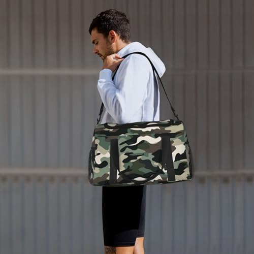 Duffle Bag Green Grey Black Camo Print Travel Duffel Bags for Men Women with Adjustable Strap Carry on Gym Bag Overnight Weekender Bag 7