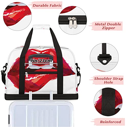 Sexy Lip Art Painting Foldable Travel Duffel Bag Tote Carry on Luggage Sport Duffle for Women Men Gym Bag Overnight Weekender Bags with Shoe Compartments and Shoulder Strap 5