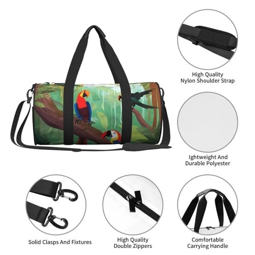 Macaw and Toucan of Rainforests Duffle Bag for Men Women - Carry on Overnight Bag Travel Duffel Tote Bags Yoga Gym Bags Waterproof Weekender Bag Large Luggage Bag with Adjustable Strap 6