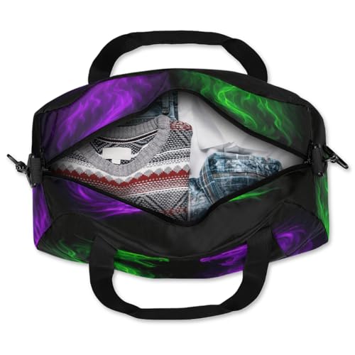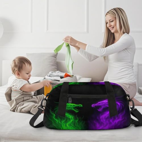 HOT ! Abstract Green Purple Fire Dragon Kids Duffle Bag, Small Lightweight Travel Sports Bag for Boys Girls, Overnight Weekender Tote, Gym Carry On Bag for School Sports Sleepover