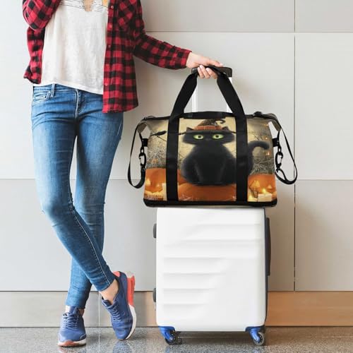 HOT ! Halloween Cat Pumpkins Beige Travel Duffel Bag for Women Men Gym Bag with Shoe Compartment Wet Pocket Carry On Weekender Overnight Bags for Travel Weekend Getaway