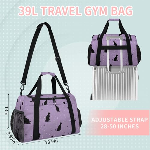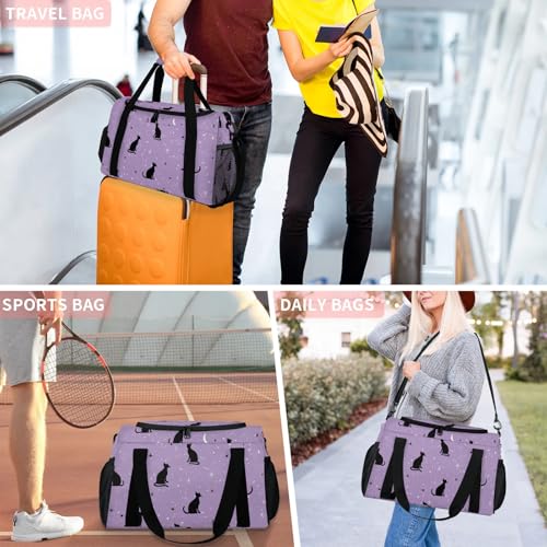 HOT ! Cat Purple Moon Stars Travel Duffel Bag Weekender Overnight Bags for Women Men Foldable Waterproof Tote Bag with Trolley Sleeve