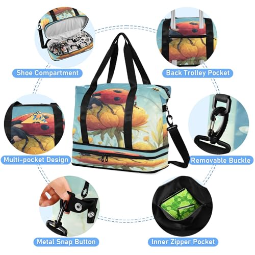 Bee Flower Yellow Duffel Bag for Women Men Gym Bag with Shoe Compartment Wet Pocket Carry On Weekender Overnight Bags for Travel Weekend Getaway 7