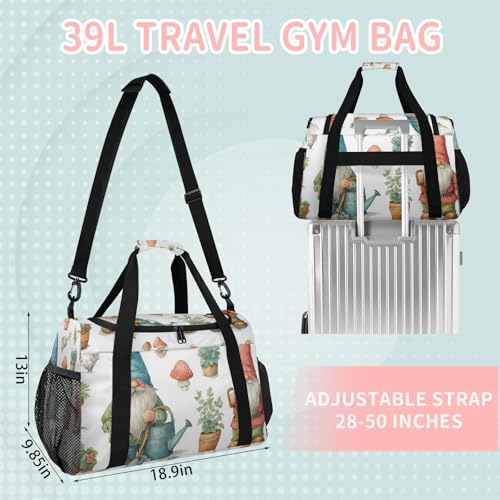 HOT ! Kizmoglux Gnome Plant Shower Travel Duffel Bag Weekender Overnight Bags for Women Men Foldable Waterproof Tote Bag with Trolley Sleeve