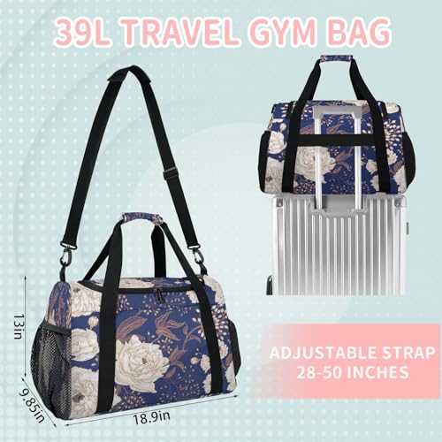 HOT ! Retro Peony Flower Travel Duffle Bag - Waterproof weekend luggage bag, men's sports and fitness bag, delivery hospital storage bag, overnight luggage bag with pull rod cover