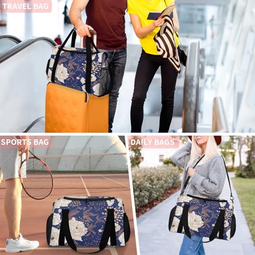 More information about Retro Peony Flower Travel Duffle Bag - Waterproof weekend luggage bag, men's sports and fitness bag, delivery hospital storage bag, overnight luggage bag with pull rod cover