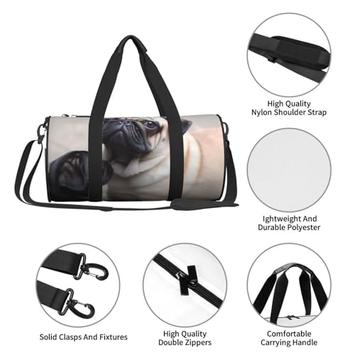 Travel Duffel Bag Sports Gym Bag With Shoes Compartment,Lightweight Overnight Weekender Bag Cute Pet Pug Yoga Gym Sports Bag For Men Women 4