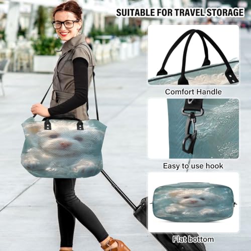 White Dog Puppy Animal Travel Duffle Bag Gym Bag Weekender Bags with Toiletry Bag Travel Trip Tote Bag 5