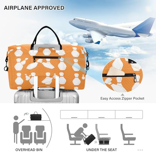 HOT ! Large Foldable Travel Duffel Bag, Waterproof Gym Bag for Men & Women, Carry-On Luggage Weekender Overnight Bag, Bowling Pins Pattern