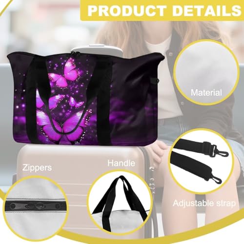HOT ! BIGCARJOB Bling Butterfly Duffle Bag for Travel Camping Butterfly Overnight Bags Carry On Personal Item Travel Bag Outdoor Gym Duffel Bags with Adjustable Strap