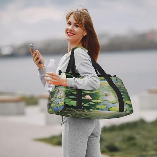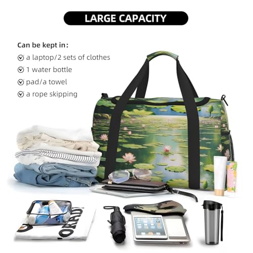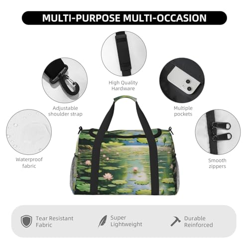 Spirit of the Lotuses Print Travel Duffle Bag - Foldable Personal Item Travel Bag for Women & Men,Carry-On Convertible Crossbody Tote Bags with Adjustable Shoulder Strap & Pockets 13x10.2x19.7 in 3