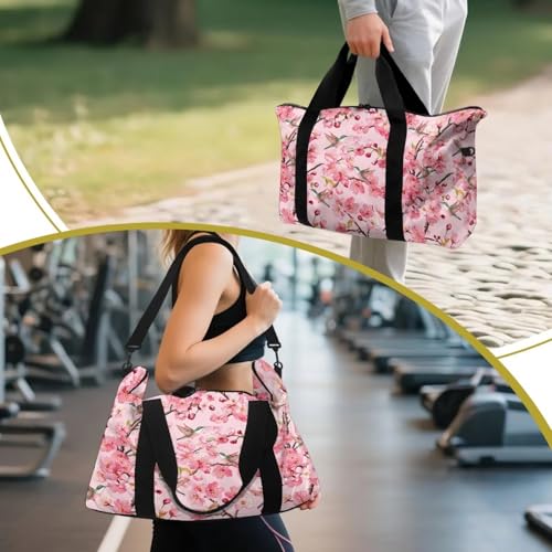 BIGCARJOB Cherry Blossoms Overnight Bags for Women Travel Hummingbird Garment Duffel Bag Carry On Foldable Weekender Bags for Traveling Camping Hiking 5