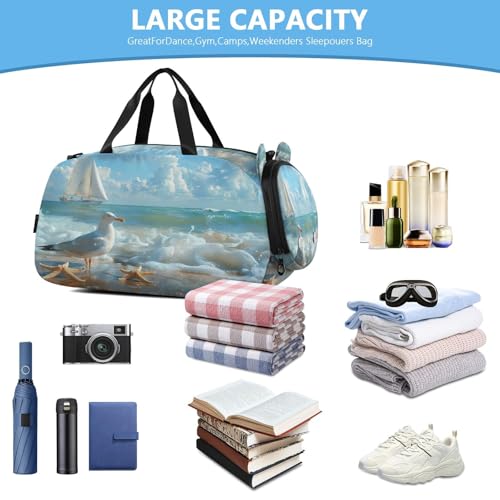 YETTASBIN Sport Travel Duffel Bag for Girls Boys, Seabird Beach Large Waterproof Weekender Overnight Bag, Detachable Shoulder Strap Gym Bag with Shoe Compartment & Wet Pocket 6