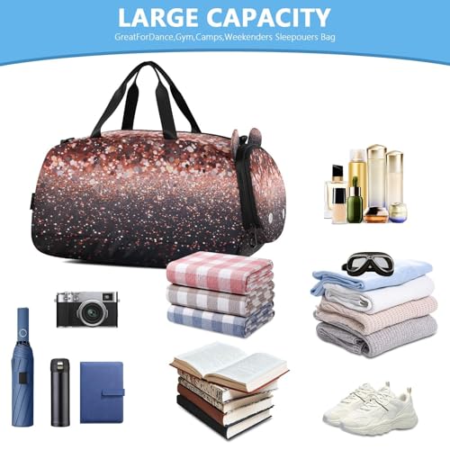 YETTASBIN Sport Travel Duffel Bag for Girls Boys, Glitter Print Large Waterproof Weekender Overnight Bag, Detachable Shoulder Strap Gym Bag with Shoe Compartment & Wet Pocket 5