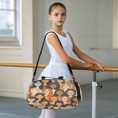 YETTASBIN Sport Travel Duffel Bag for Girls Boys, Smiling Girl Large Waterproof Weekender Overnight Bag, Detachable Shoulder Strap Gym Bag with Shoe Compartment & Wet Pocket 5