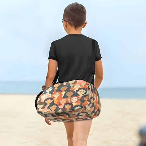 YETTASBIN Sport Travel Duffel Bag for Girls Boys, Smiling Girl Large Waterproof Weekender Overnight Bag, Detachable Shoulder Strap Gym Bag with Shoe Compartment & Wet Pocket 6