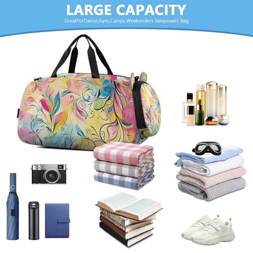 YETTASBIN Sport Travel Duffel Bag for Girls Boys, Abstract Flowet Large Waterproof Weekender Overnight Bag, Detachable Shoulder Strap Gym Bag with Shoe Compartment & Wet Pocket 7