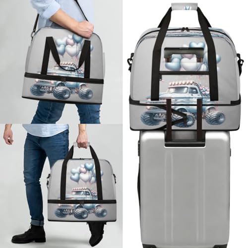 HOT ! Monster Truck Balloon Travel Duffel Bags for Women & Men Large Sports Gym Bags Foldie Weekender Overnight Bag Carry On Tote Bag With Shoe Compartment Personal Item Luggage for Travel Sports Gym