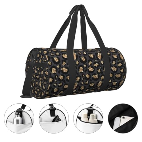 Black Leopard Print Round Travel Duffel Bag Large Capacity Gym Sports Bags for Hiking Vacation Trips 1