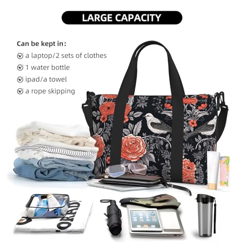HOT ! Travel Bag for Weekend Trips, Airplane Carry-On with Adjustable Strap, Chinese Painting Bird (5)