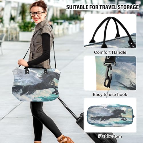 HOT ! Weekender Bags Travel Duffel Gym Bag Winged Horse Carry on Overnight Tote Bag with Toiletry Bag for Airplane Travel Trip Gym Yoga