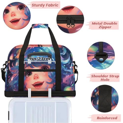 Large Weekender Overnight Bags Colorful Cute Girl Travel Duffel Bag for Women Men Gym Bag With Shoe Compartment Foldie Travel Tote Bag Carry On Personal Item Bag for Travel Gym Sports 1
