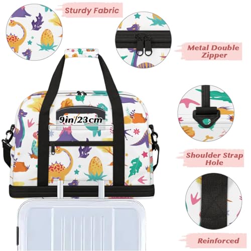 HOT ! Large Weekender Overnight Bags Colorful Watercolor Dinosaur Travel Duffel Bag for Women Men Gym Bag With Shoe Compartment Foldie Travel Tote Bag Carry On Personal Item Bag for Travel Gym Sports