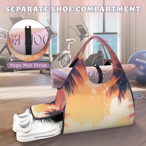 Yoga Tote Bag for Women Tall Palm Tree Beach Bag with Shoe Storage & Yoga Mat Strap Waterproof Weekender Duffle Bag for Travel Fitness Weekend Trips 6