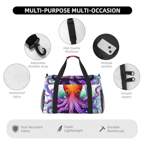 HOT ! Colorful Octopus Travel Duffel Bag Lightweight Waterproof Carry On Tote Bag Foldable Weekender Overnight Bags Sport Gym Bag For Women Men