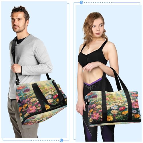 More information about Sunlight Wildflowers Gym Bag for Women Sport Travel Duffel Bag Shoulder Weekender Overnight Bags with Wet Pocket & Shoe Compartment