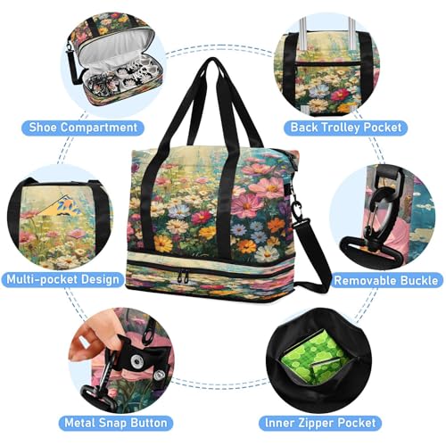 Sunlight Wildflowers Gym Bag for Women Sport Travel Duffel Bag Shoulder Weekender Overnight Bags with Wet Pocket & Shoe Compartment 4
