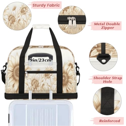 Travel Duffel Bags Vintage Sunflower Prints Foldable Weekender Bags for Women with Shoes Compartment Waterproof & Tear Resistant Carry on Overnight Luggage Duffel Bag Shoulder Sports Tote Bag 5