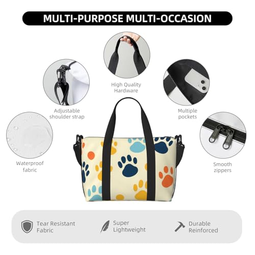More information about Cute Cat Paw Print Travel Duffel Bag Polka Dot Footprint Carry On Tote Bag for Women Large Shoulder Weekender Overnight Bag Sports Gym Bag