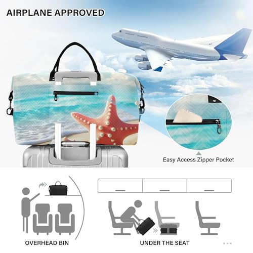 Coastal Starfish Seashell Travel Duffel Bag Toiletry Pouches Set of 2, Animal Print Luggage Bag Overnight Bags 7