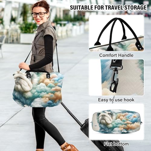 HOT ! Cute Bulldog Clouds Puppy Duffle Bags Travel Makeup Pouch Set of 2, Design Small Duffel Bag Overnight Bag