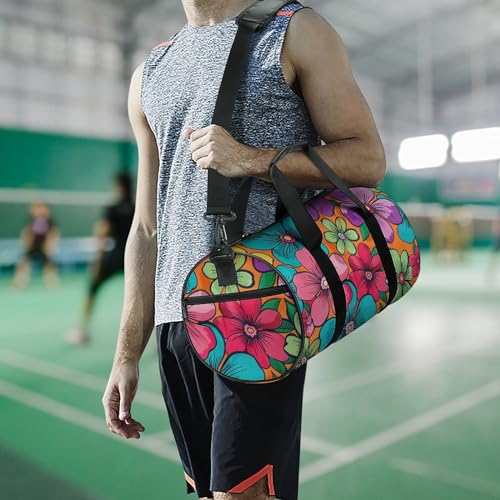 HOT ! Travel Duffel Bag Weekender Bags for Men Women Large Capacity Overnight Bags Orange Vintage Flower Travel Sports Gym Bag Canvas Carry On Tote Bags for Travel Yoga
