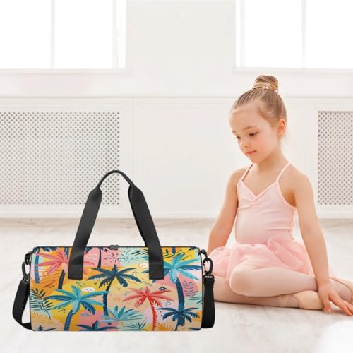 Coconut Tree Tropical Travel Gym Bag Waterproof Sport Dance Bag for Women Men Portable Gymnastics Duffel Bags Canvas Tote Carry on Handbag for Workout Overnight Weekender 7