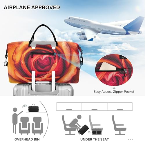 Duffel Bag Set for Travel Gym Sport, Weekender Bag Carry on Overnight Bags for Women Men-Red Close Rose Print 4