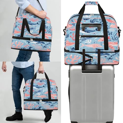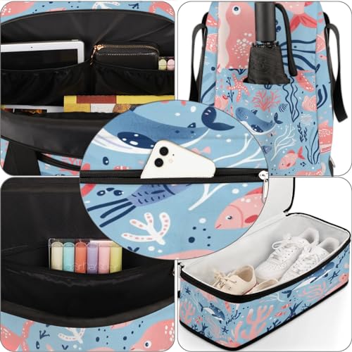 HOT ! Travel Duffel Bag with Shoe Compartment, Tropical Sea Creatures Shoulder Weekender Bags for Women, Foldable Waterproof Travel Bag Carry on Bag