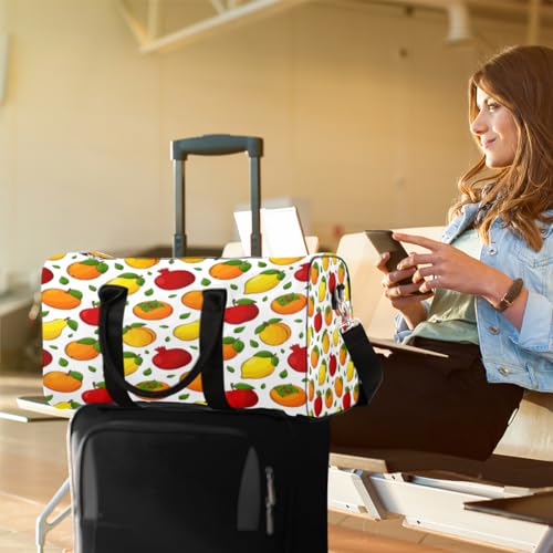Lemon Apples Travel Duffel Bag, Persimmons Pears Peaches Sports Tote Gym Bag, Foldable Weekender Overnight Bag, Luggage Handle Bag for Women Men 6