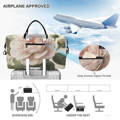 Large Travel Duffel Bag, Retro White Floral Sport Tote Gym Bag, Shoulder Weekender Overnight Bag for Women Men, Carry On Luggage with Toiletry Bag 5