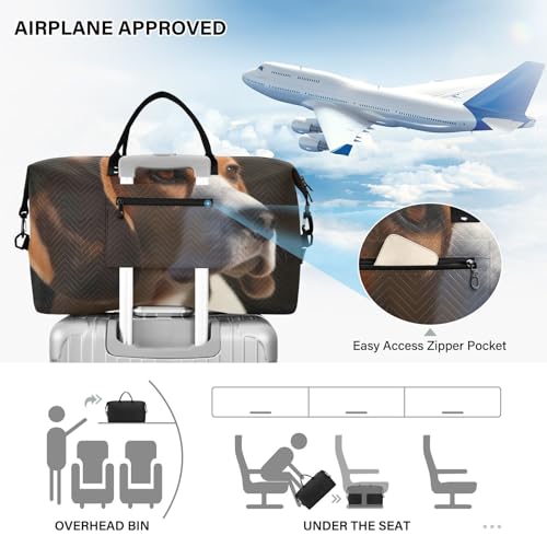 Large Travel Duffel Bag, Beagle Sunlight Close Up Sports Tote Gym Bag, Shoulder Weekender Overnight Bag for Women Men, Carry On Luggage with Toiletry Bags 7