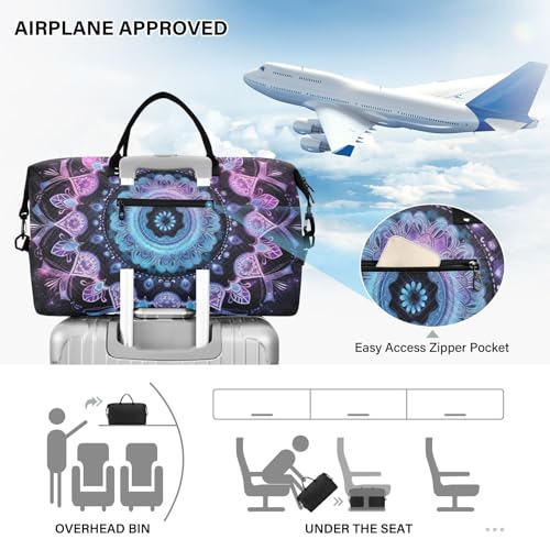 More information about Large Travel Duffel Bag, Purple Floral Circle Sports Tote Gym Bag, Shoulder Weekender Overnight Bag for Women Men, Carry On Luggage with Toiletry Bags