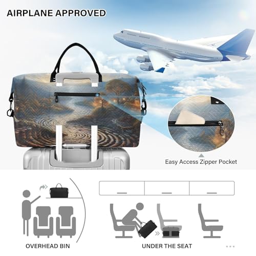 Large Travel Duffel Bag, Night Painting Sports Tote Gym Bag, Shoulder Weekender Overnight Bag for Women Men, Carry On Luggage with Toiletry Bags 7