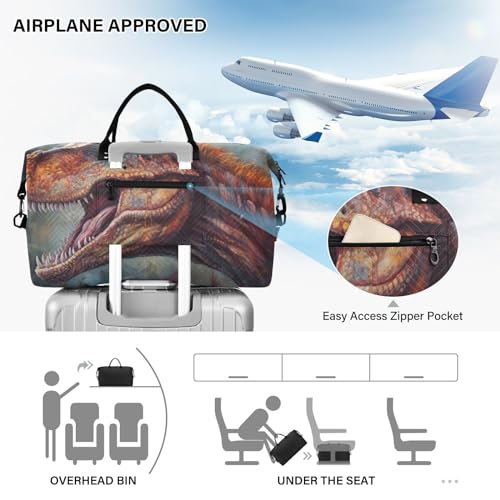 More information about Large Travel Duffel Bag, Roaring Dinosaur Sports Tote Gym Bag, Shoulder Weekender Overnight Bag for Women Men, Carry On Luggage with Toiletry Bags