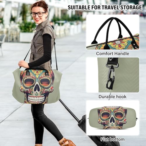 HOT ! Large Travel Duffel Bag, Colorful Mexican Skull Sports Tote Gym Bag, Shoulder Weekender Overnight Bag for Women Men, Carry On Luggage with Toiletry Bags