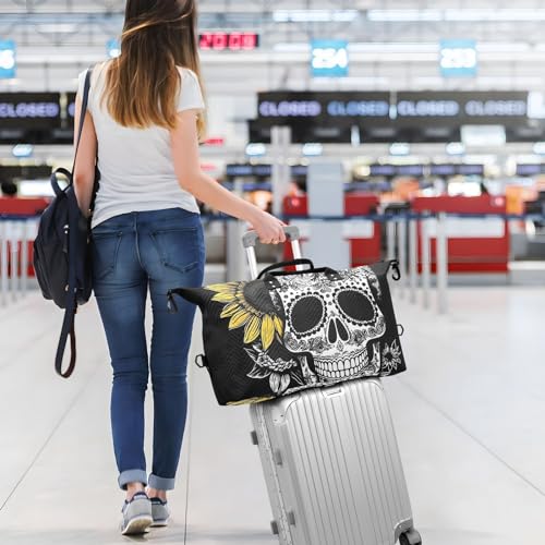 HOT ! Large Travel Duffel Bag, Yellow Sunflower and Skull Sports Tote Gym Bag, Shoulder Weekender Overnight Bag for Women Men, Carry On Luggage with Toiletry Bags