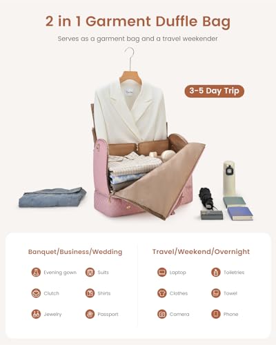 HOT ! LOVEVOOK Convertible Garment Bag for Women with Shoe Pouch, Carry On Travel Duffel Bag with Toiletry Bag, 2 in 1 Hanging Suitcase Suit Bag, Waterproof Weekender Bag for Business Trip, Wedding, Pink