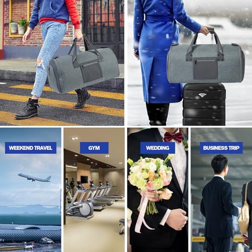 HOT ! Richeart Garment Bags for Travel - Brand Zipper - Water Repellent Garment Bag with Shoe Compartment - 2 in 1 Convertible Suit Bag Travel with Shoe Bags - Medium Dark Gray