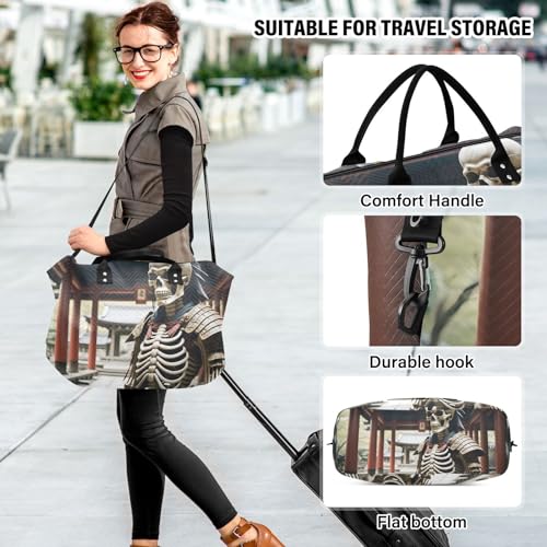 HOT ! Large Travel Duffel Bag, Japanese Skeleton Warrior Sports Tote Gym Bag, Shoulder Weekender Overnight Bag for Women Men, Carry On Luggage with Toiletry Bags